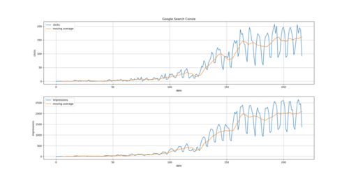 Google Search Console で取得した「目指せ!電気主任技術者~解説ノート~」のクリック数,表示回数等を可視化してみた。 なお,可視化は Python で行い,グラフ作成には Python の matplotlib.pyplot,移動平均の計算には pandas を用いている。 クリック…